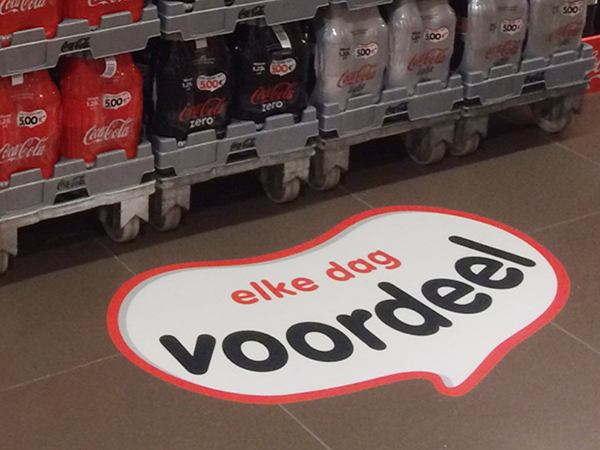 L’autocollant de sol non permanent est un autocollant de sol qui colle au sol avec une épaisseur de colle détachable. L’autocollant adhère si fortement au sol que les clients peuvent marcher dessus sans le moindre problème et il ne laisse aucune trace après l’avoir enlevé. Cette variante est parfaitement adaptée pour les supermarchés, pharmacies et autre chaines de magasins.