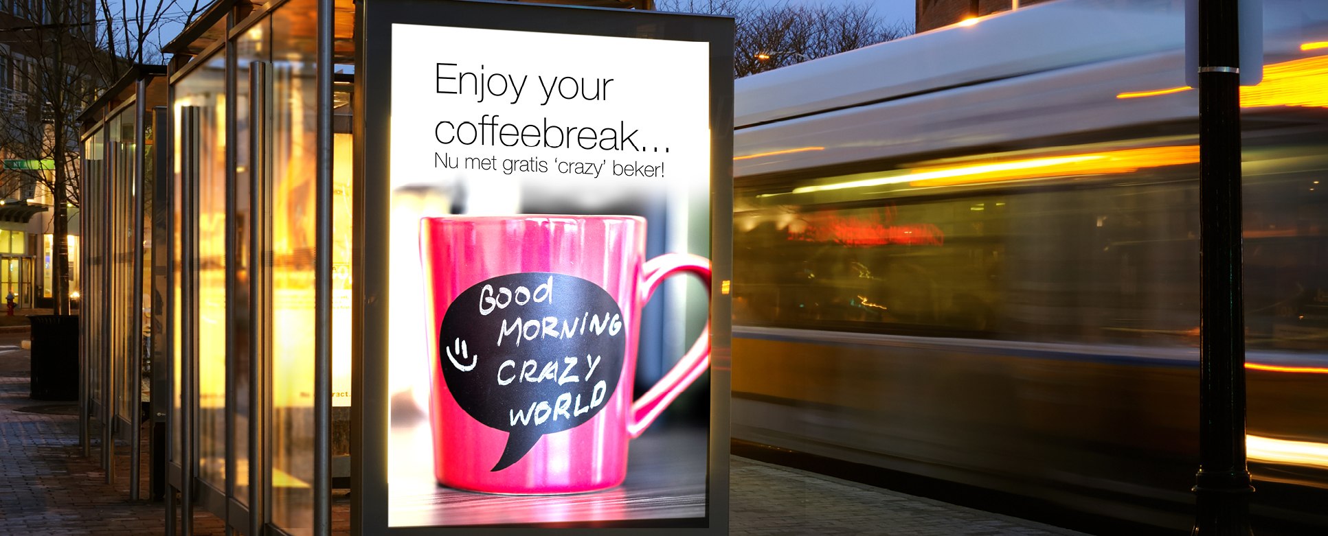 CREA fournit aussi des impressions pour des campagnes d’Abri sur un papier spécial Day & Night pour divers entrepreneurs dans les média. Les abris sont ainsi lisibles et visibles de jour comme de nuit. Ces campagnes peuvent être personnalisées avec par exemple un message dans lequel le nom d’une ville est cité.